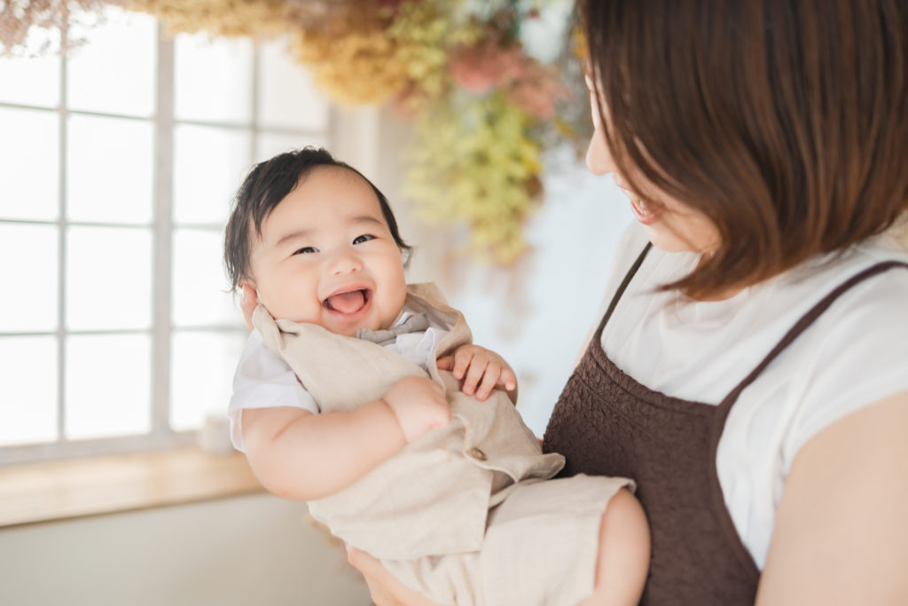 パパとママのお顔を見るとにっこり安心している様子でした。