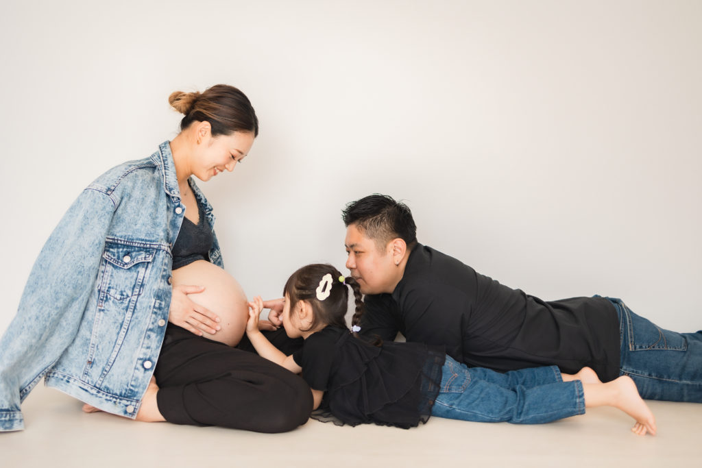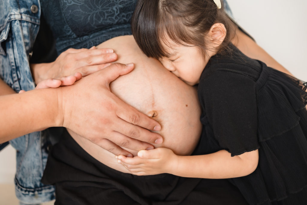 お姉ちゃんがお腹の赤ちゃんを心待ちにいしている様子が